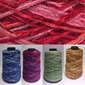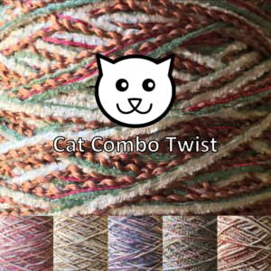 Cat Combo Twist! This twist combines rayon boucle and rayon chenille to make a wonderful texture – similar to a combination that would result from a cat playing with scrap yarn in a studio!